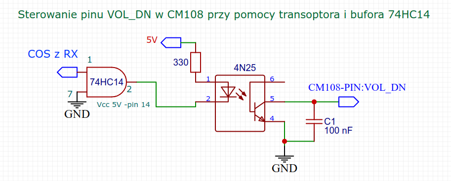 - zasilanie do 74HC14 musi być 5V możesz użyć z CM108 jeśli nie przekracza poboru prądu
