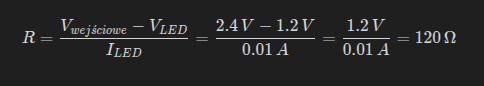 📐 Obliczenie rezystora dla napięcia 2.4 V: